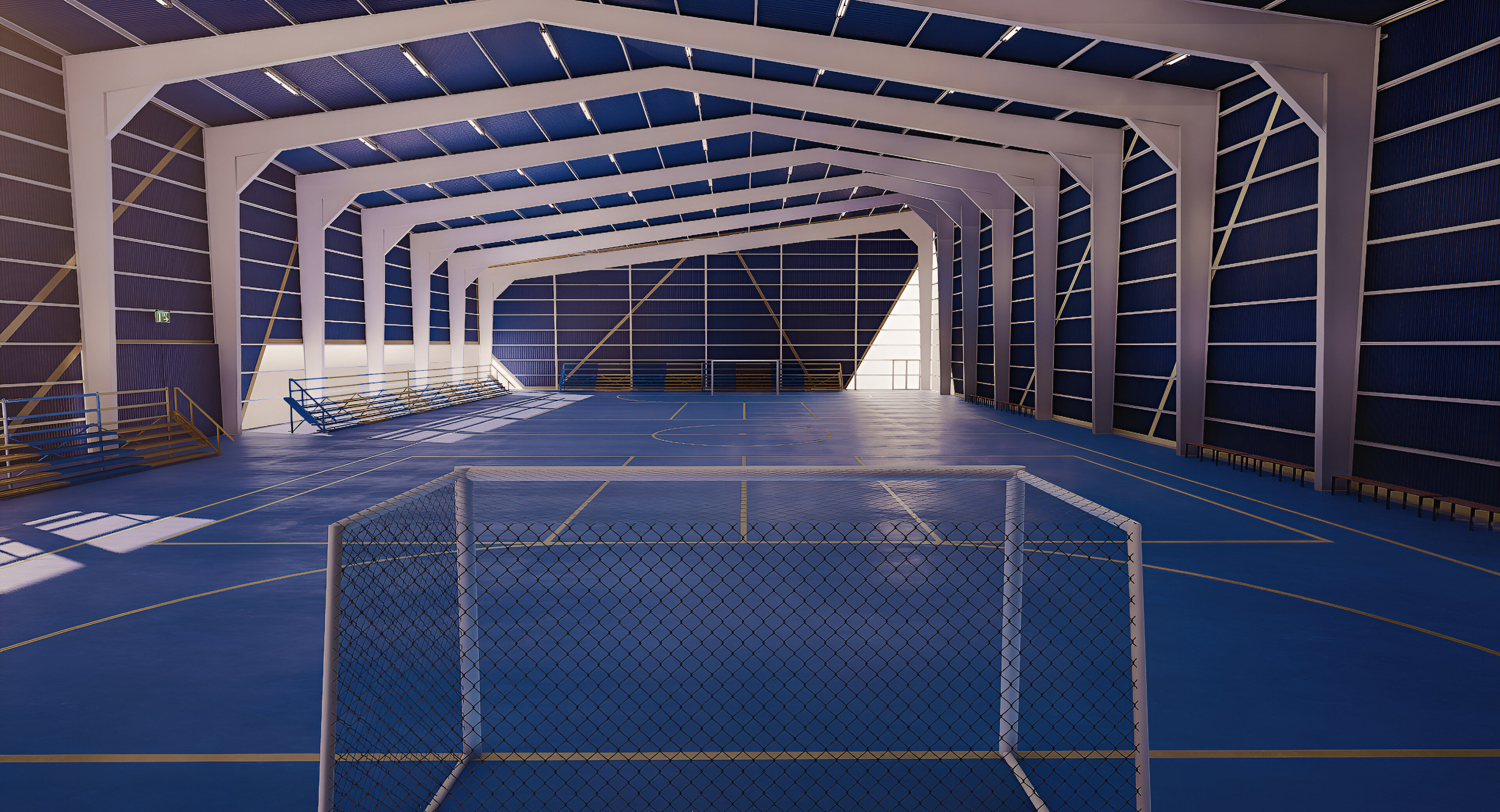Como premisa, se ha buscado generar un ámbito que no solo cumpla con las características mencionadas, sino que a nivel arquitectónico se destaque por su particularidad morfológica, buscando dinamizar el espacio a través de su cumbrera diagonal y sus planos quebrados para representar el movimiento que efectúan los deportistas al desempeñarse.