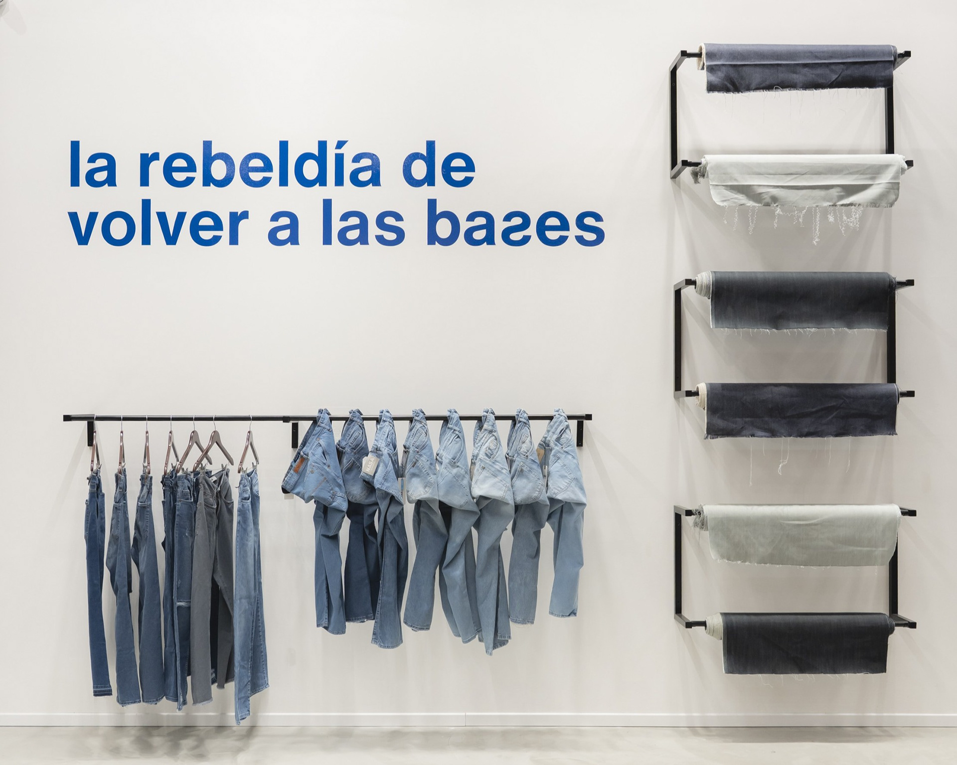 Para el desarrollo de este proyecto, se partió del concepto “la rebeldía de volver a las bases”, idea central de la nueva línea comunicacional de la marca, con el objetivo de que esta premisa funcione como guía para el posterior trabajo, entendiendo “las bases” como aquellos productos básicos argentinos de jean y cuero que destacaban por su calidad en los 90’s. Los elementos propios de la confección, como el proceso de creación en el taller y los materiales textiles se hacen presentes a través de distintas formas —pinturas, mobiliario, ambientaciones, exposición de prendas, cartelería— descontextualizándolos para darles nuevos usos y entendiéndolos como parte de la identidad marcaria.